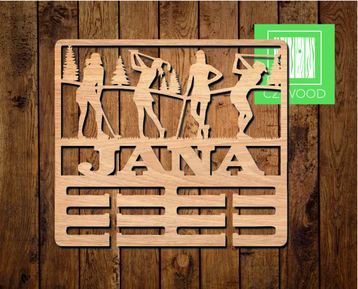 Dřevěný věšák na medaile se jménem - Golf