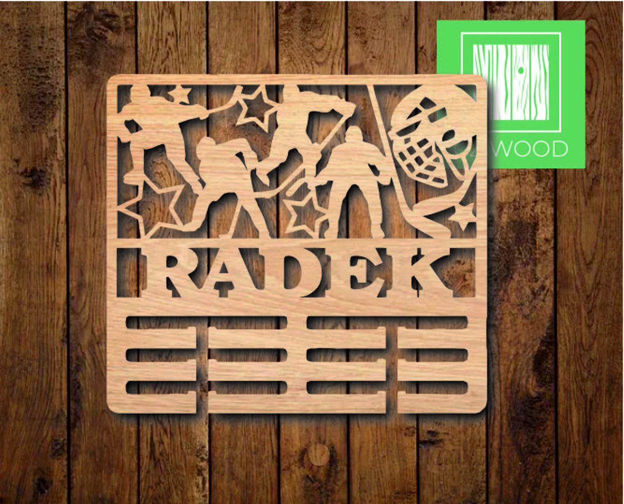 Dřevěný věšák na medaile se jménem - hokej